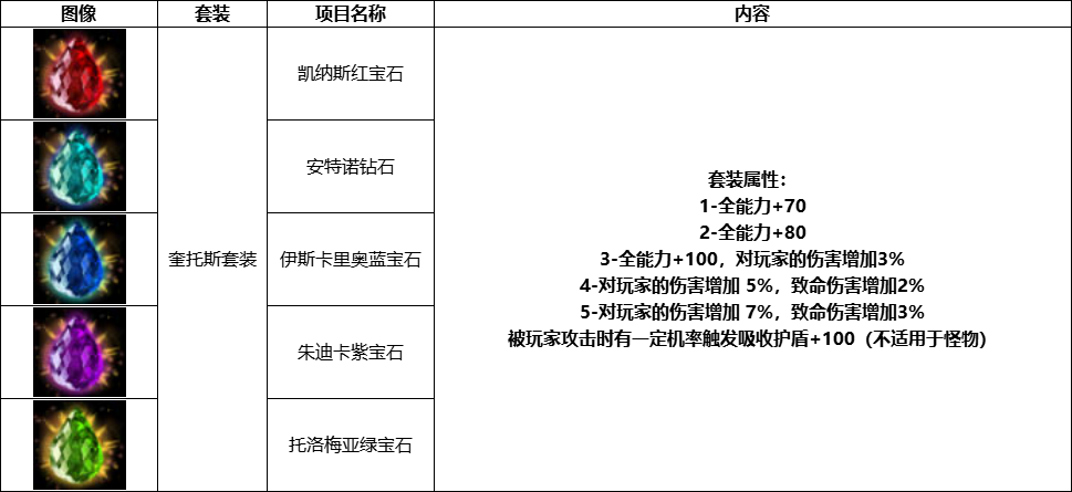 套装石是可以为布塔级别或最强装备级别的装备赋予套装属性的物品。