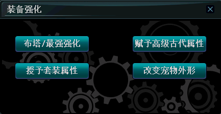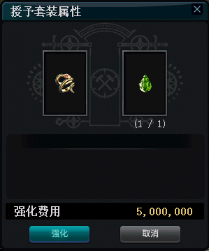 新套装石可以授予布塔等级、最强装备等级装备的所有部位。 消耗500万游戏币,100%几率赋予。 |