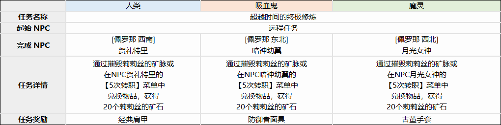 五次转职任务分为三个阶段,必须完成上一关任务才能进入下一阶段。